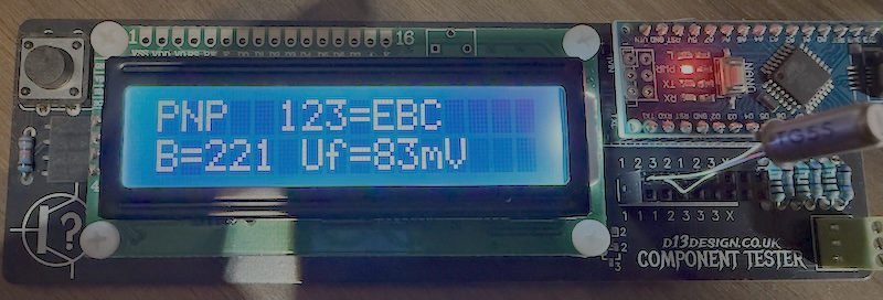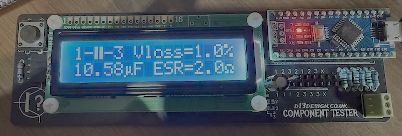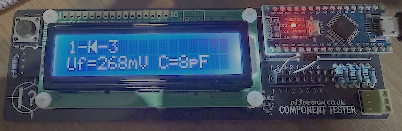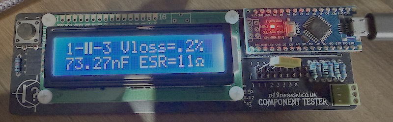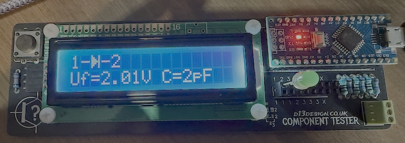 Occasionally, the tester can report incorrect values when running with no component installed - typically it will detect some capacitance or resistance between pins and provide a reading. If this occurs, or if you just want to calibrate the tester, then you can short the three pins together and press the button. Self test mode will begin and the device will calibrate. This tends to resolve any problems and returns things to a fully working state. If issues continue, or if you want to play with the software a bit more, then you can re-flash the Arduino using the code project found at https://drive.google.com/file/d/1jCziEUAKc78mH5Md9VgCyUTUBu0OrBwq/view?usp=drive_link
